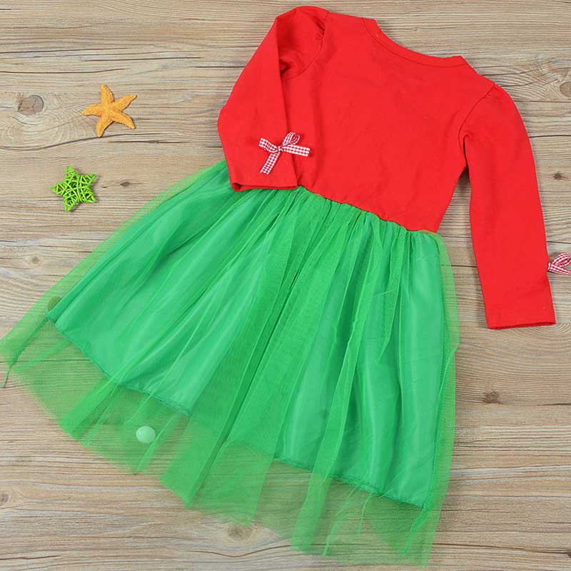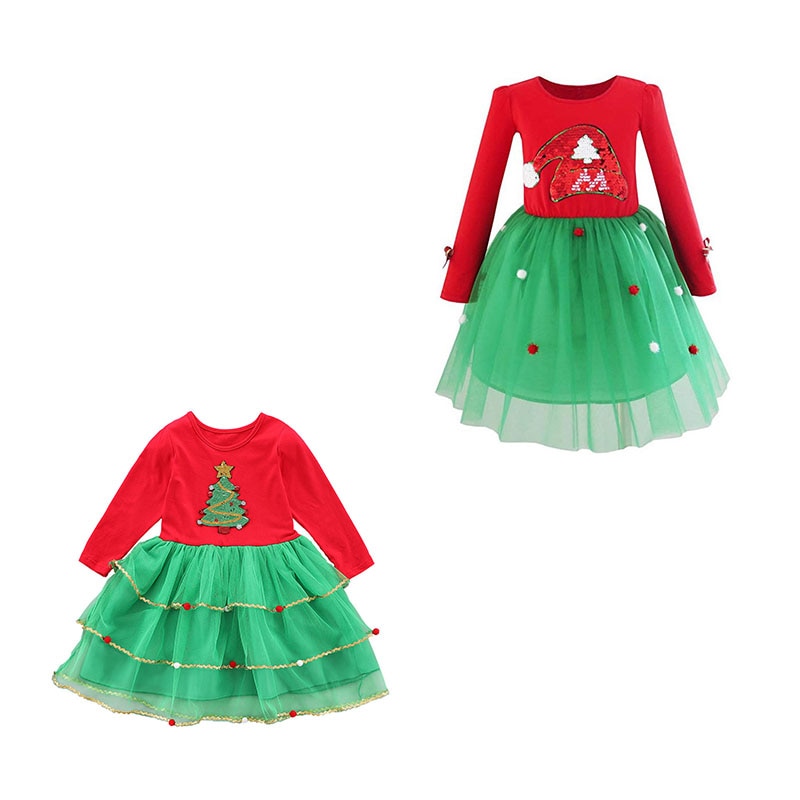 Long sleeve casual Christmas tree print girl cute dress, which will make your kids look cute and attractive