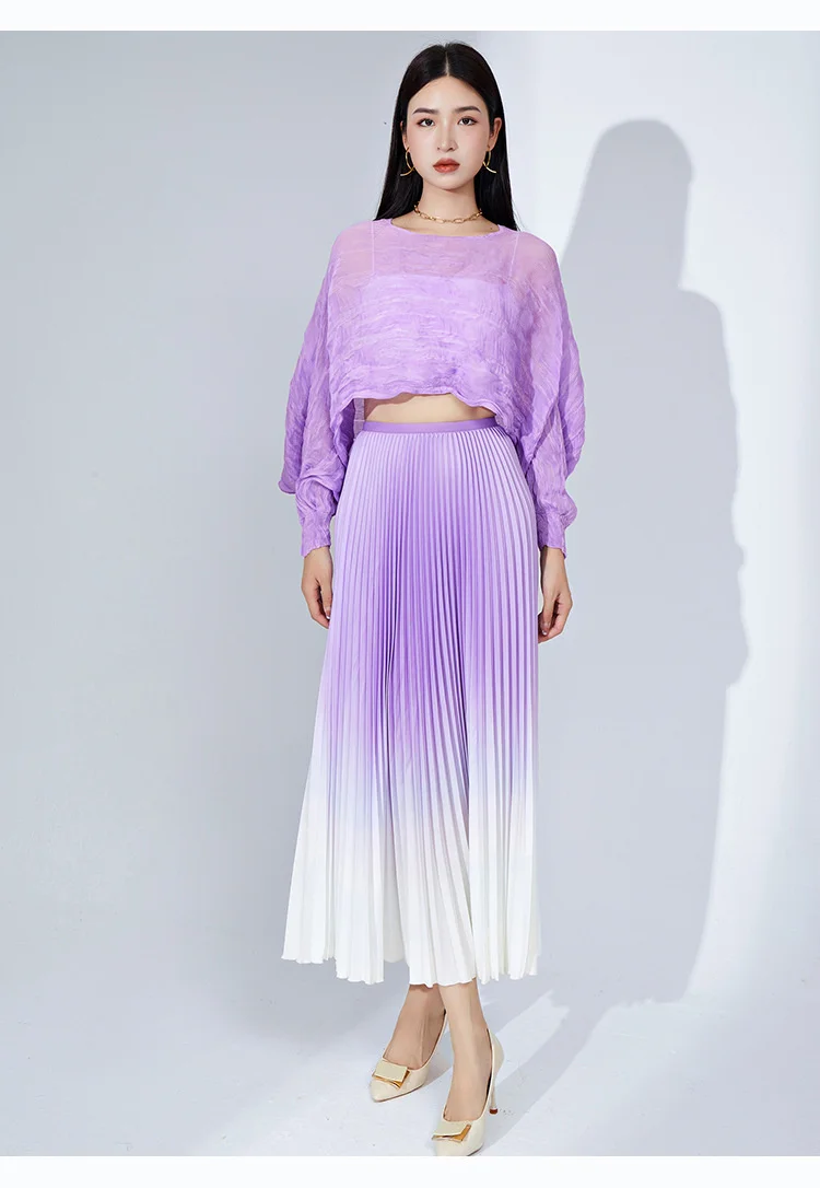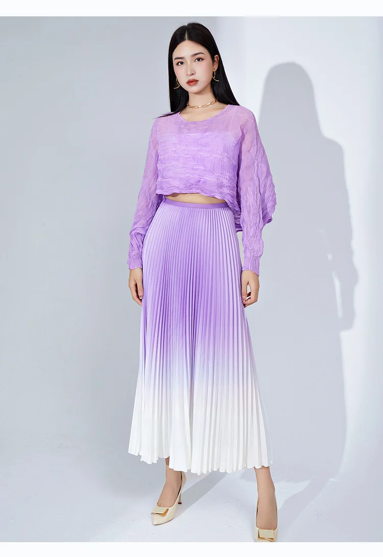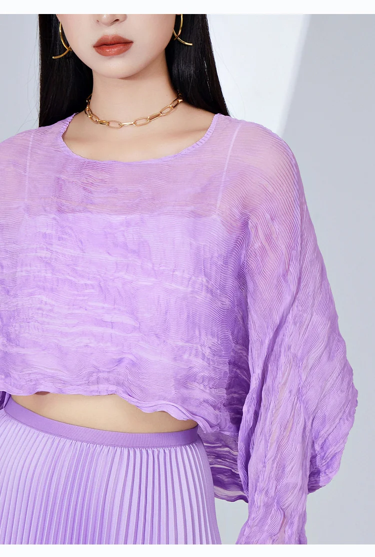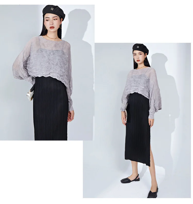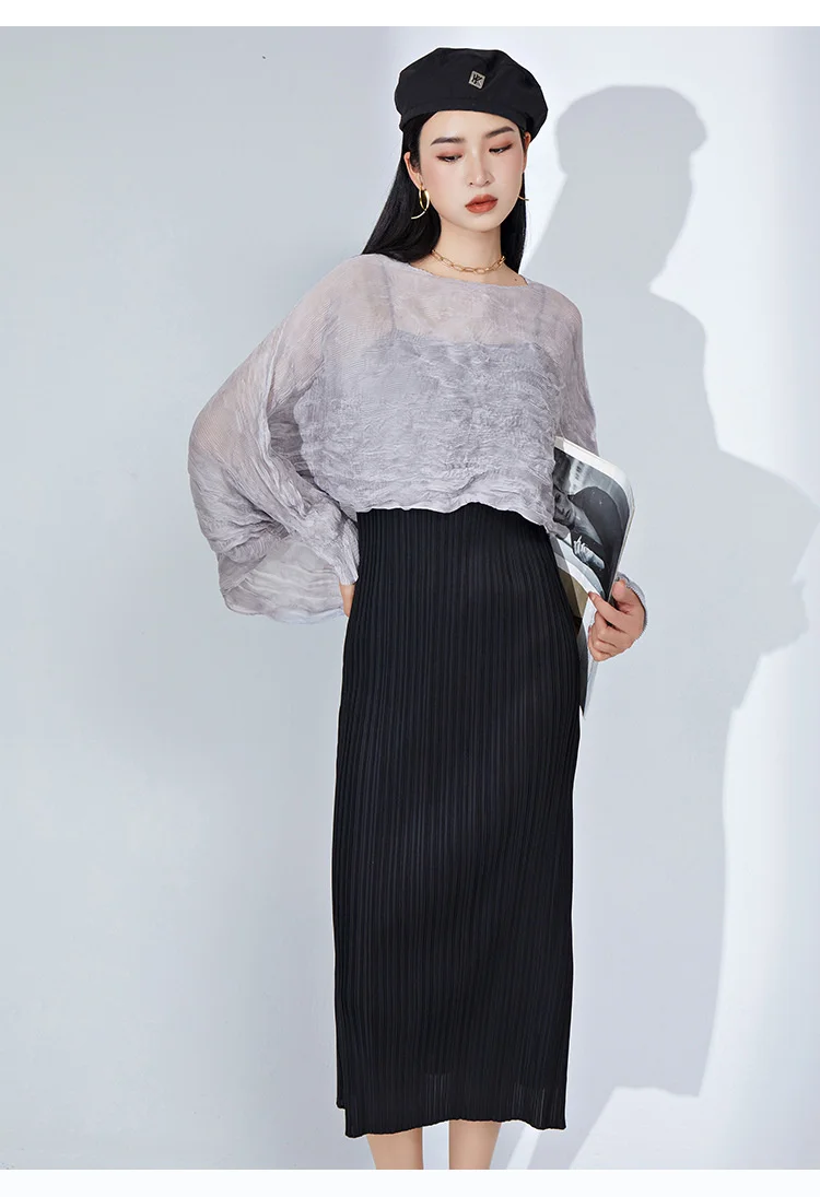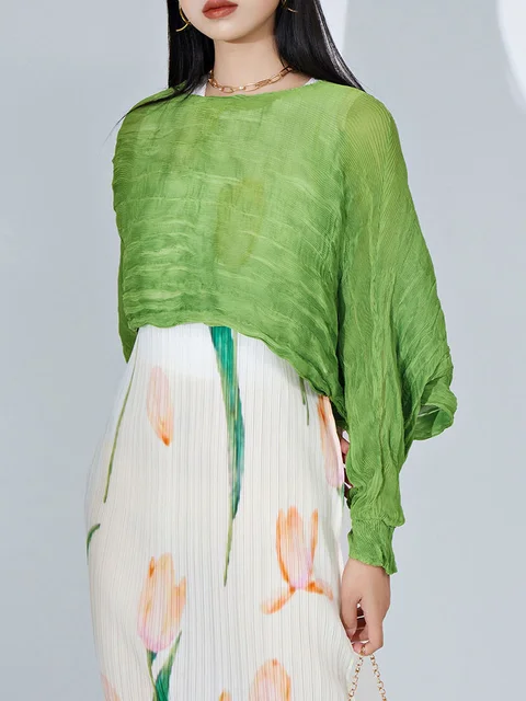 Pleated Long Sleeve Blouse For Women Round Collar Solid Color Summer Elegant Female Casual Breathable Clothing