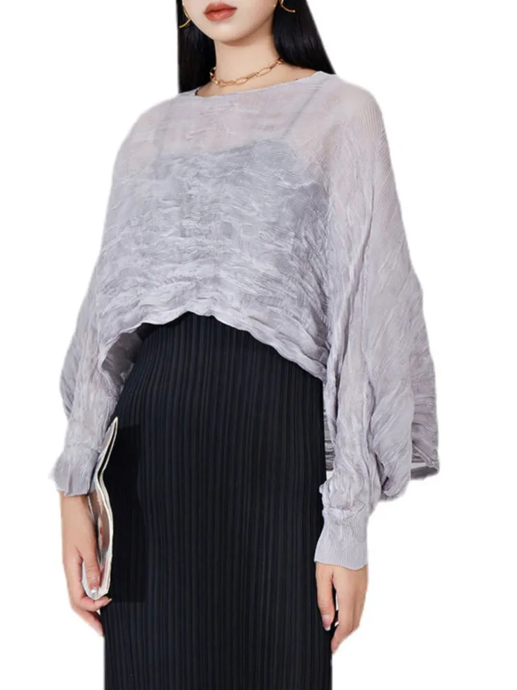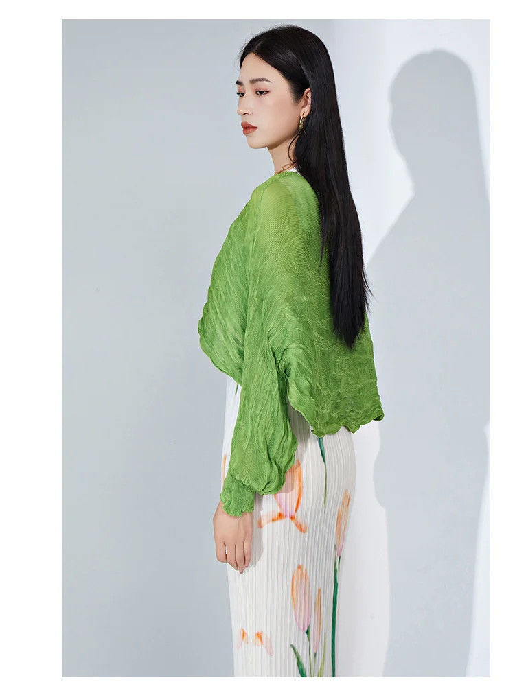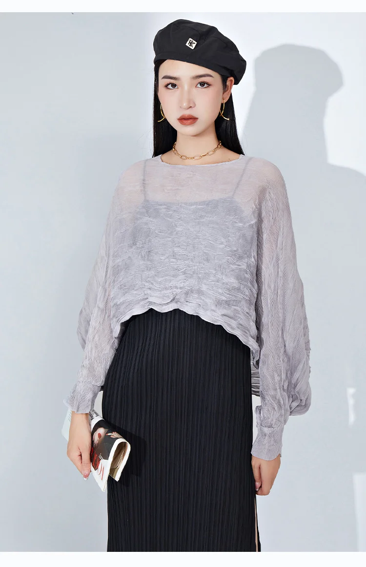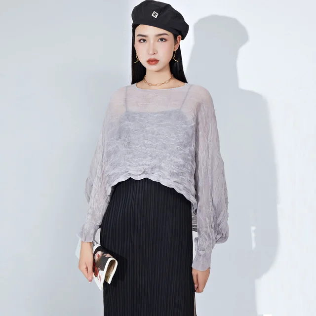 Be the first to review “Pleated Long Sleeve Blouse For Women Round Collar Solid Color Summer Elegant Female Casual Breathable Clothing”